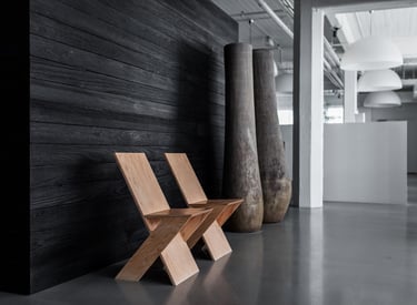 Le bois brûlé incarne parfaitement l’idée qu’une matière peut être transformée, sublimée, renforcée… sans nuire à l’environnement.